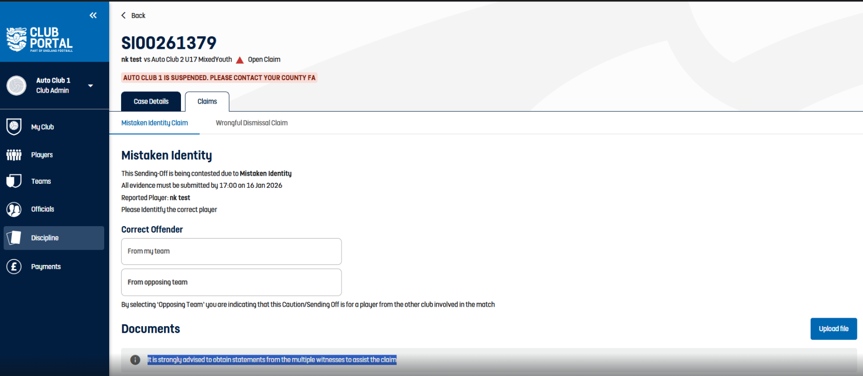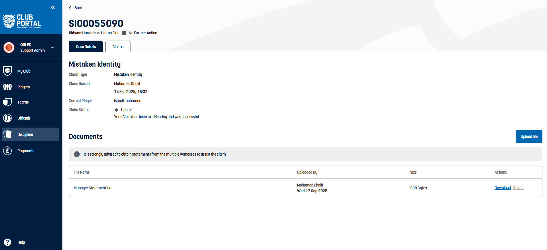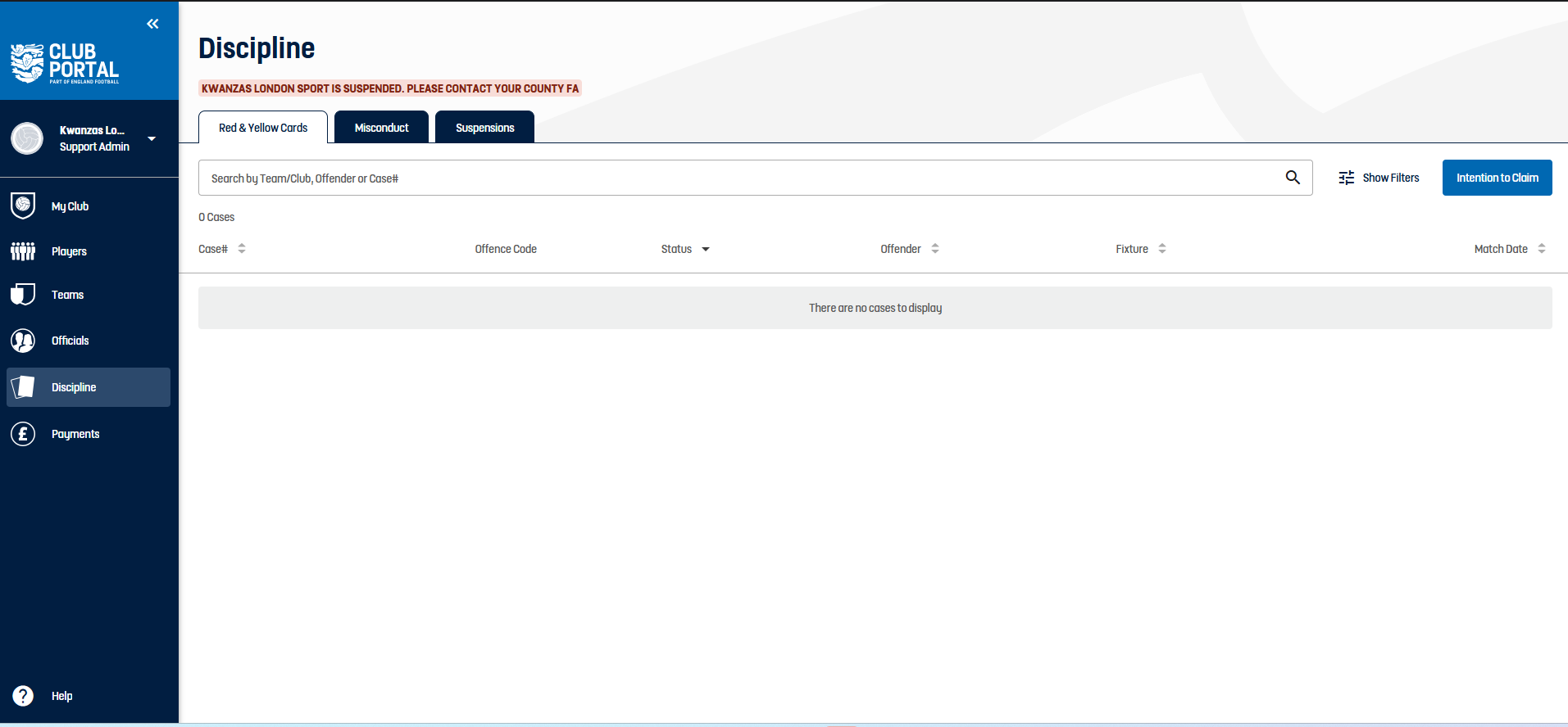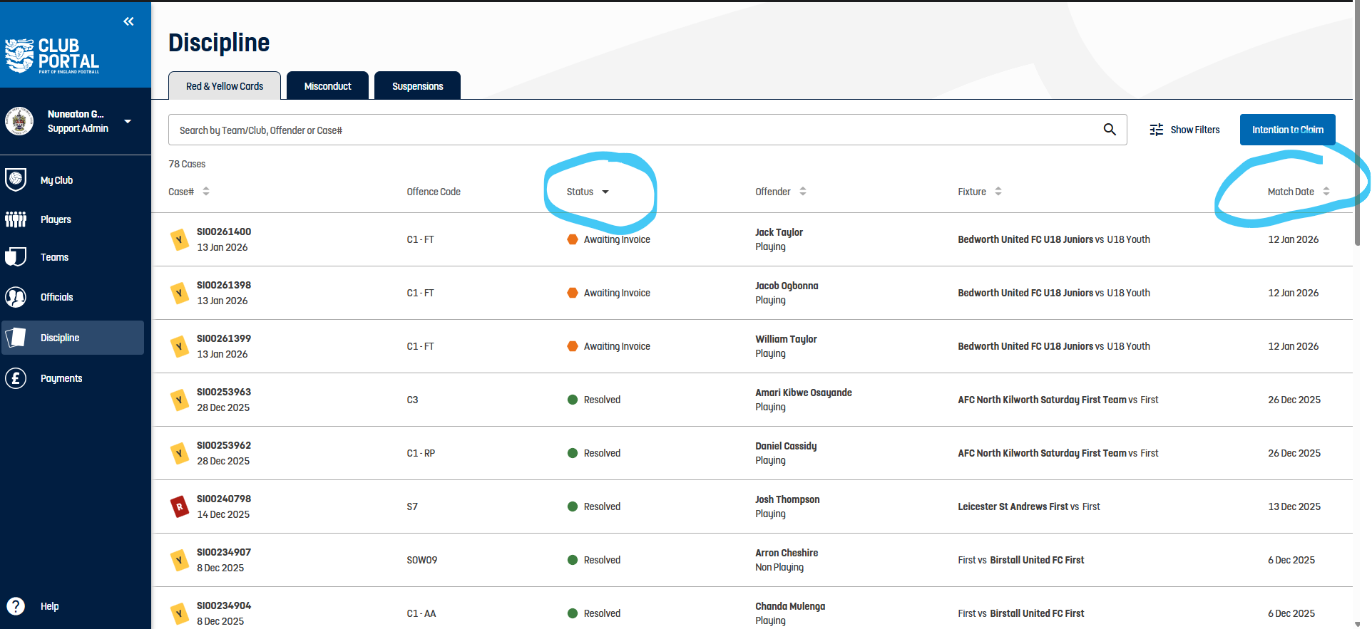 Competition Portal - R/Y Cards - Show cases NFA'd due to claim upheld. This feature enhances the transparency of disciplinary actions within the competition portal, allowing users to see the outcomes of claims upheld, which is crucial for maintaining trust and clarity in the competition processes.