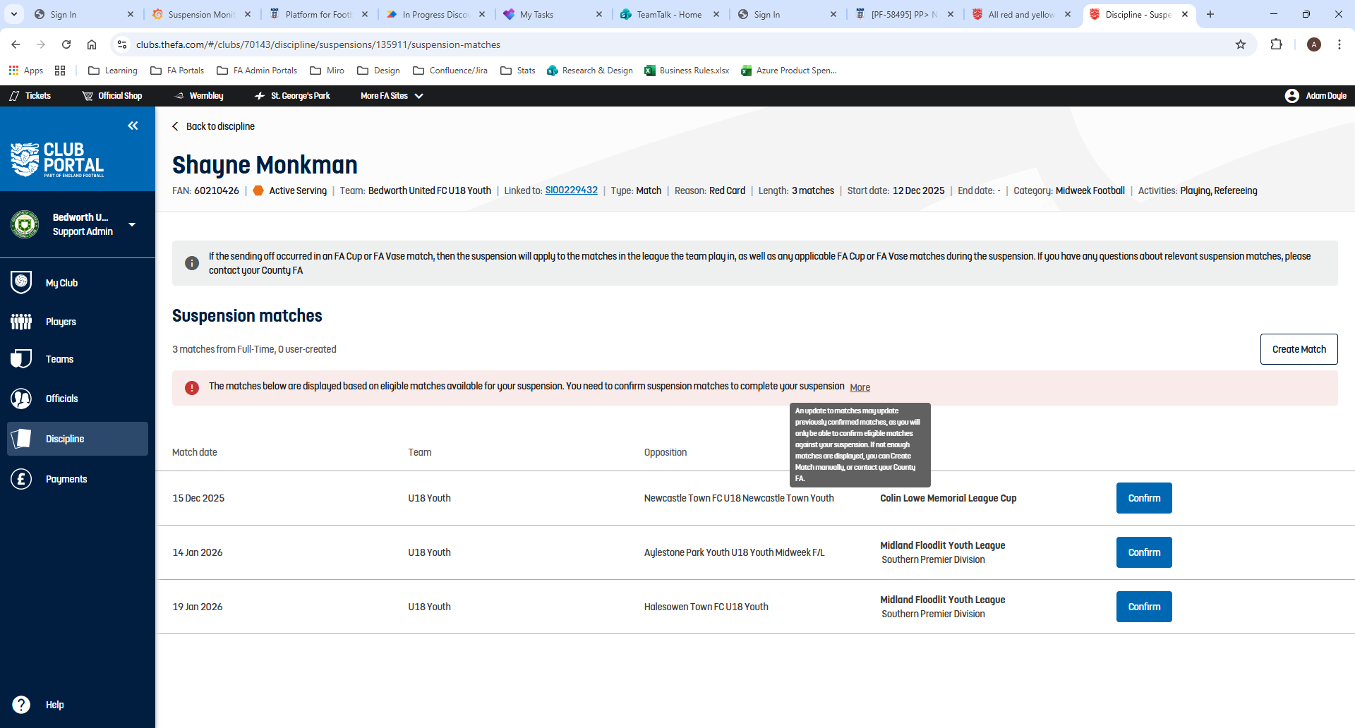 Improved safeguarding and qualifications details for officials in the Clubs Portal, ensuring clarity and compliance.