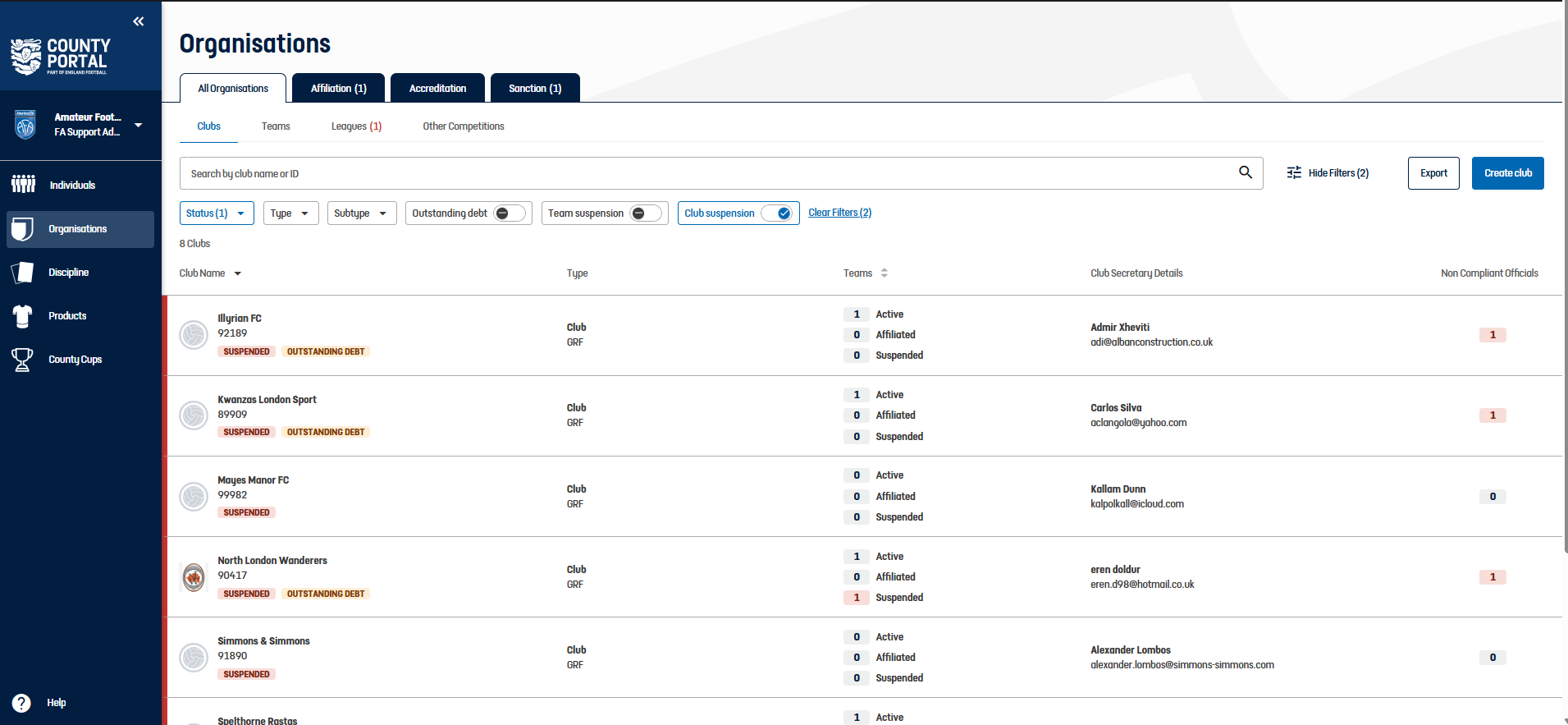 County Portal – Clubs Listing – Add Suspension Filter. This new feature allows users to filter clubs based on suspension status, improving the usability of the clubs listing.