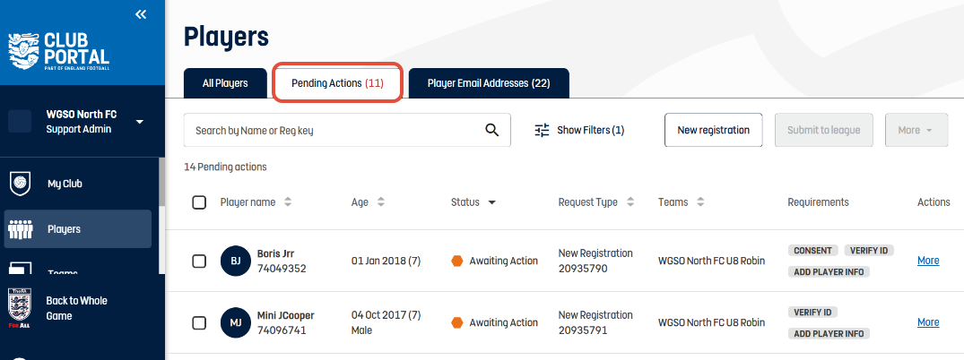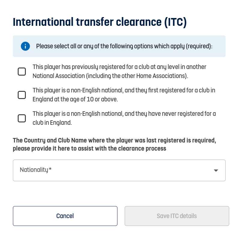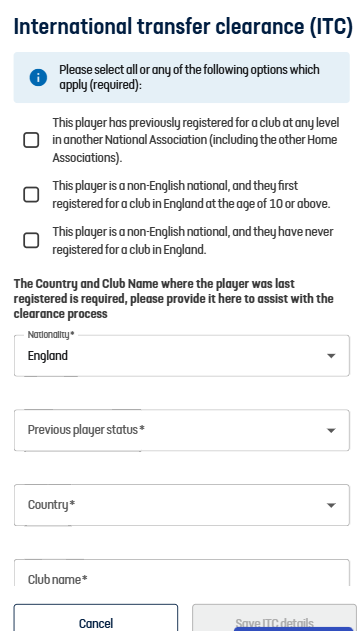Players can also confirm if they do or do not require international clearance themselves when being invited to register.