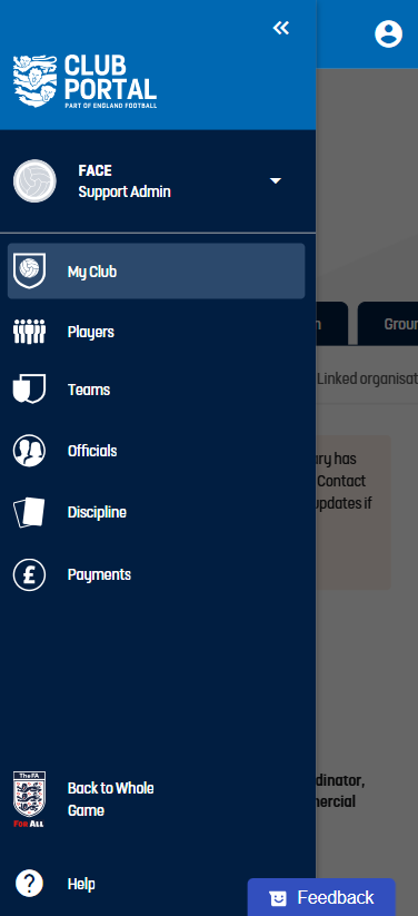 When logging into the Club Portal, you will now notice that the 'My Club' tab is highlighted. This is now the area that you can go to to view and edit your club's details.