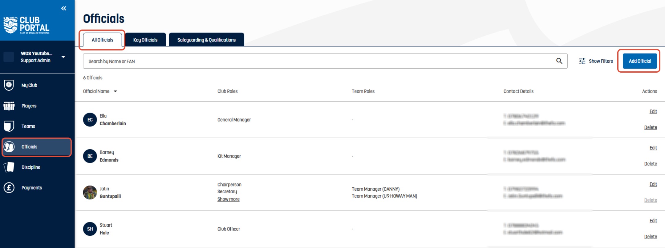 Please note: You can only switch key officials as you cannot leave their roles vacant. You will not be able to remove a key official from the "All Officials" tab - More guidance on this can be found here