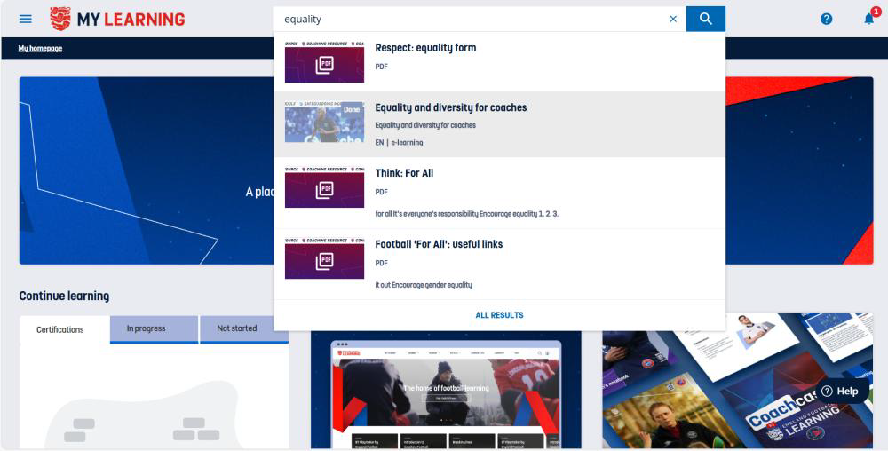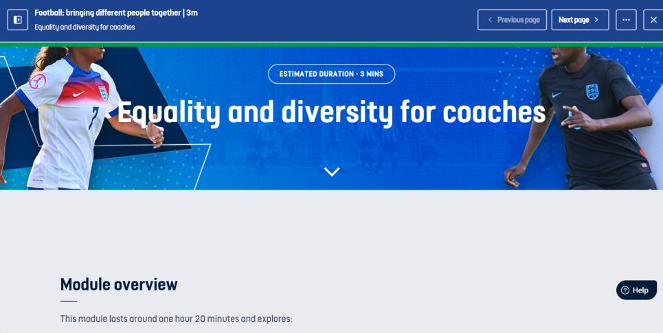 Once on your home page type in ‘Equality’ in the search bar, and select ‘Equality and Diversity for Coaches’ – this is a generic course, not just for coaches, it is the correct module.