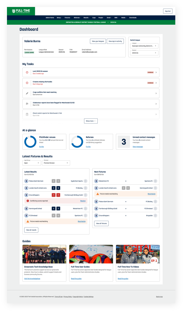 Or click the link to start a new one Full-Time - A New look For League Admins – Fill in form